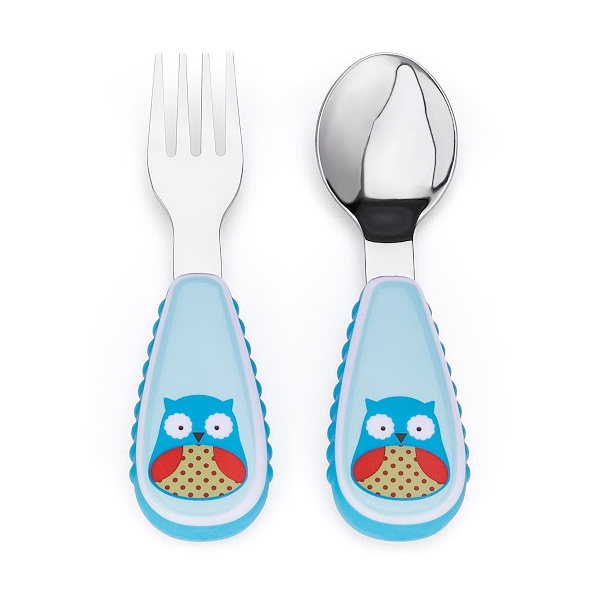 Komplet składający się z widelca i łyżki, wykonanych ze stali nierdzewnej. Dzięki specjalnie wyprofilowanym uchwytom, samodzielne jedzenie stanie się dla maluchów dużo łatwiejsze. Sztućce są w pełni bezpieczne, nie zawierają szkodliwych dla zdrowia BPA, ftalanów i PCV.